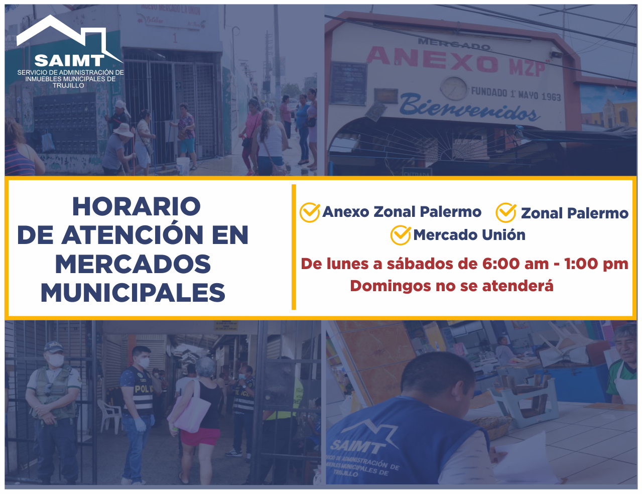 Con el propósito de garantizar el abastecimiento de alimentos en los mercados municipales de Trujillo, se atenderá de acuerdo al siguiente horario: