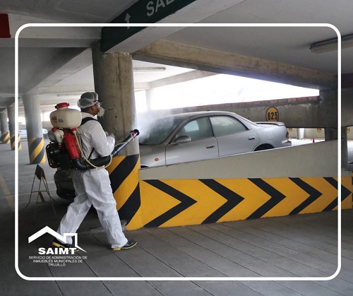 Como parte de la implementación de un protocolo de salud y seguridad, se dio inicio con los trabajos de limpieza y desinfección de los 8 niveles que integran este local edil, además de la oficina de administración, la sala de espera, los SS.HH y el área de la caja, a fin de proteger tanto a los usuarios como al personal que labora en la cochera.