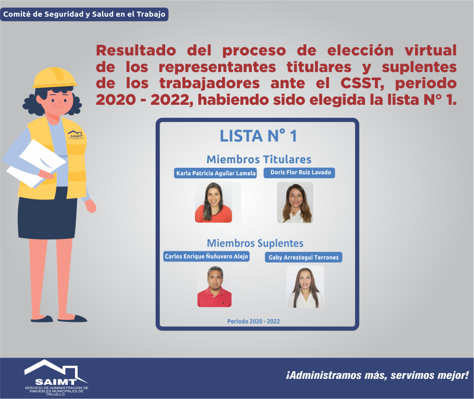 Resultado del proceso de elección virtual de los representantes titulares y suplentes de los trabajadores ante el CSST, periodo 2020-2022, habiendo sido elegido la lista Nro 1.