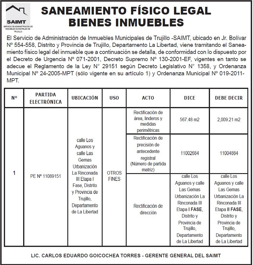 SANEAMIENTO FISICO LEGAL DE BIENES INMUEBLES
